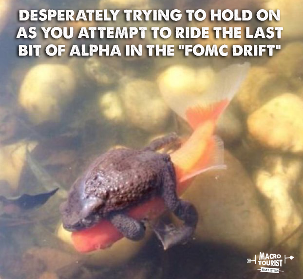 Way back in August of 2013, two FRBNY staffers wrote a paper titled, “The Pre-FOMC Announcement Drift”. It was a great paper by David Lucca and Emanuel Moench which highlighted the tendency for the S&P 500 to rise in the period right before FOMC meetings.